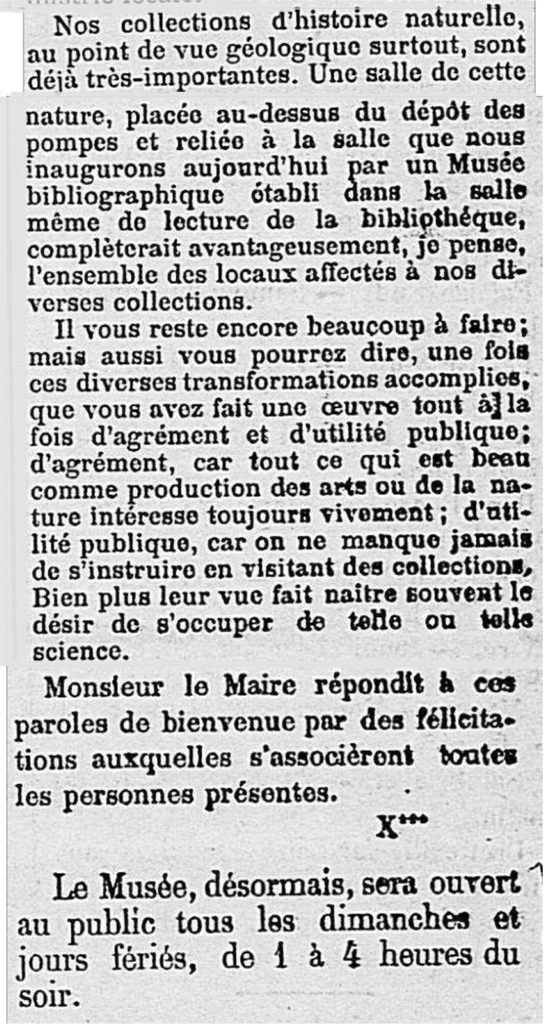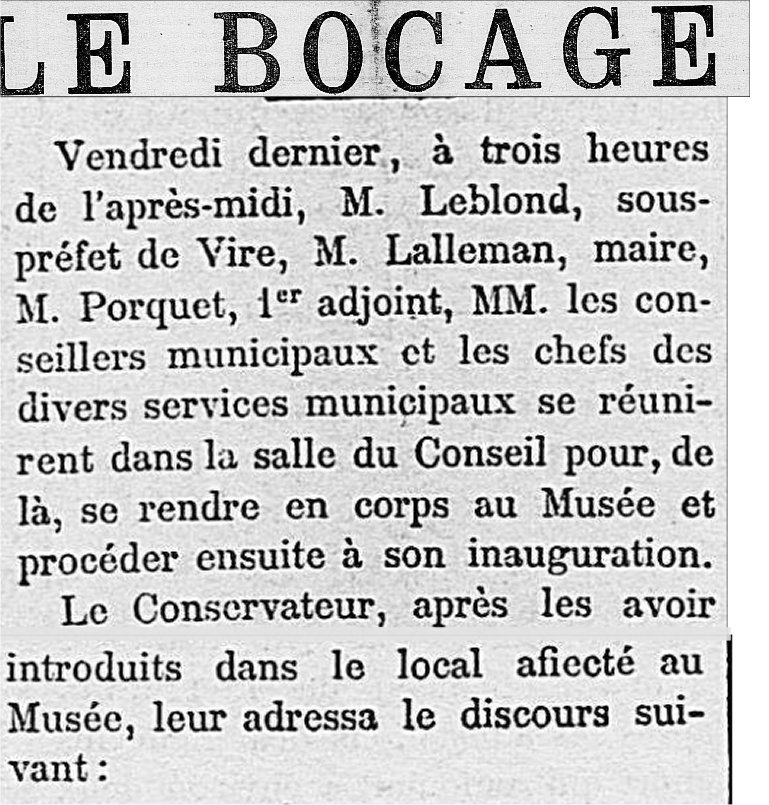 A l’occasion de l’ouverture du musée, voici son histoire telle que le rapportait Le Bocage dans son premier numéro de sa seconde année, soit du 8 janvier 1881:
