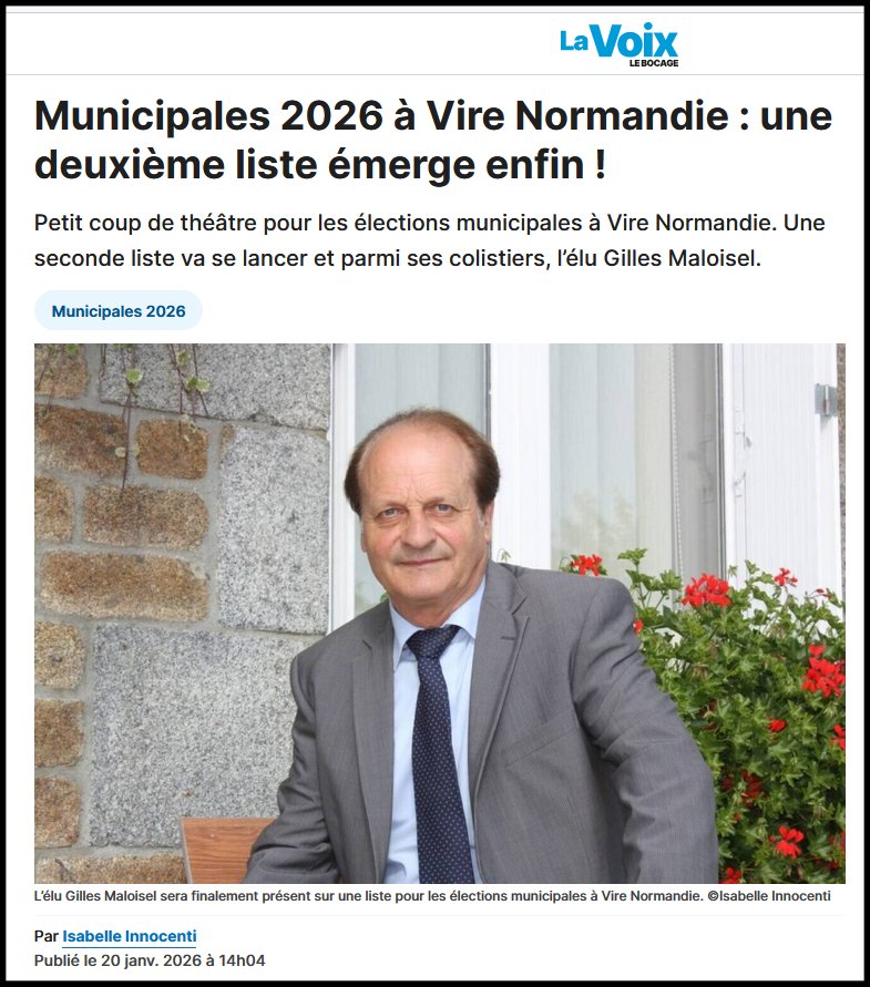 En écoutant le premier bulletin d’infos aujourd’hui mardi (bulletin renouvelé à 12h00) nous avons bien des informations sur la campagne électorale viroise mais, ô surprise, Christophe LECUYER tend d’abord son micro à Gilles MALOISEL (donc opposé à Eddy COUTARD) pour qu’il s’explique avec plus de clarté sur son retournement de décision d’abandon de toute fonction élective.